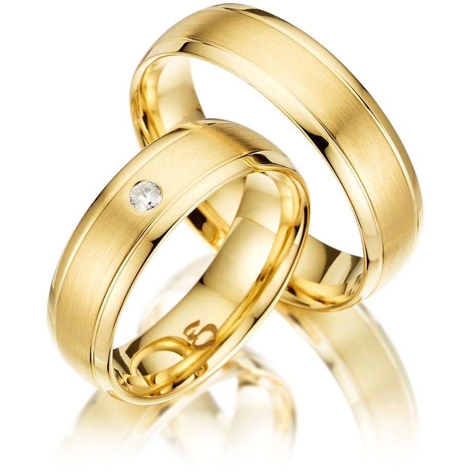 Diese wunderschönen Eheringe aus der Fantasy 2 Kollektion sind 6mm breit mit einer Stärke von 1,6mm. Die Ringe sind 3 geteilt. Die Mitte ist längsmattiert, die beiden Seiten poliert mit einer Trennfuge dazwischen. Der Damenring wird durch einen 0,05ct. großen Diamanten geziert. Es gibt sie in allen Größen von 45 -75 in 0,5 Schritten. Außerdem kann die Goldlegierung 333, 375, 585 und 750 ausgewählt werden. Wir können Ihnen die Ringe ebenfalls in Weiß-, Rot-, Rosé-,Graugold und Platin anbieten, bitte kontaktieren Sie uns hierfür und wir beraten Sie gerne.