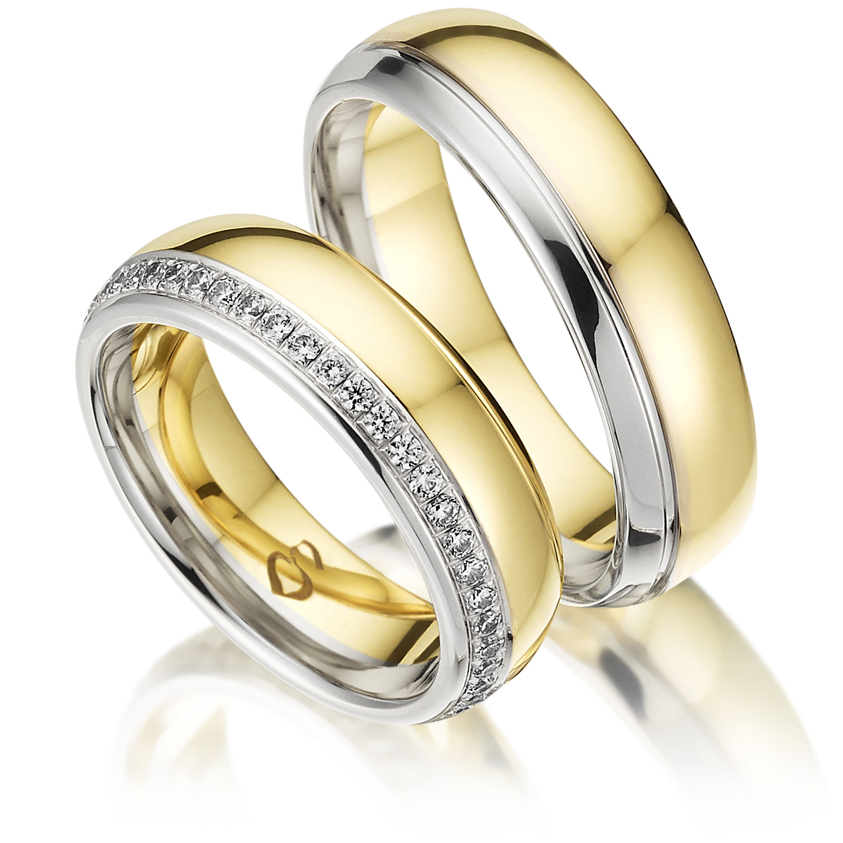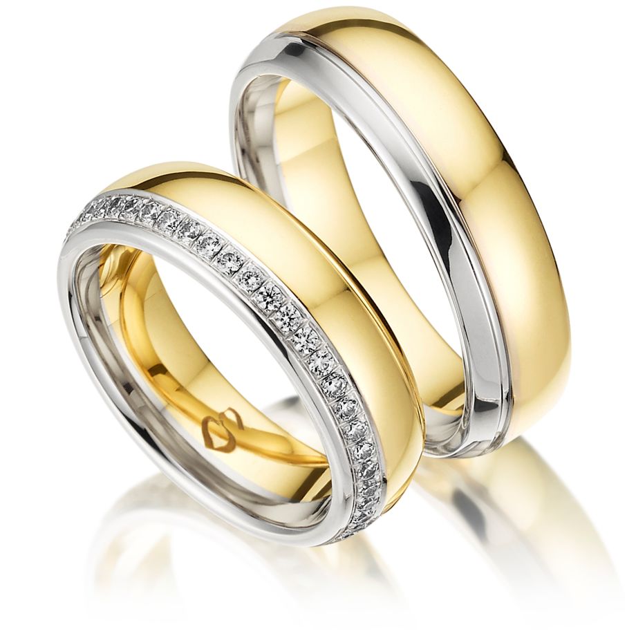 Diese schönen Eheringe aus der Fantasy 2 Kollektion sind 6mm breit mit einer Stärke von 2,2mm. Sie haben ein besonders rundliches Profil, sind zum Teil Weißgold und Gelbgold poliert. In der Mitte werden sie durch eine Trennfuge geteilt. Der Damenring wird durch einen Verschnitt rundherum mit Diamanten mit 0,01ct. geziert. Die Anzahl variiert je nach Ringgröße (Beispiel: Größe 58 hat 45Diamanten). Es gibt sie in allen Größen von 45 -75 in 0,5 Schritten. Außerdem kann die Goldlegierung 333, 375, 585 und 750 ausgewählt werden. Wir können Ihnen die Ringe ebenfalls in Weiß-, Rot-, Rosé-,Graugold und Platin anbieten, bitte kontaktieren Sie uns hierfür und wir beraten Sie gerne.